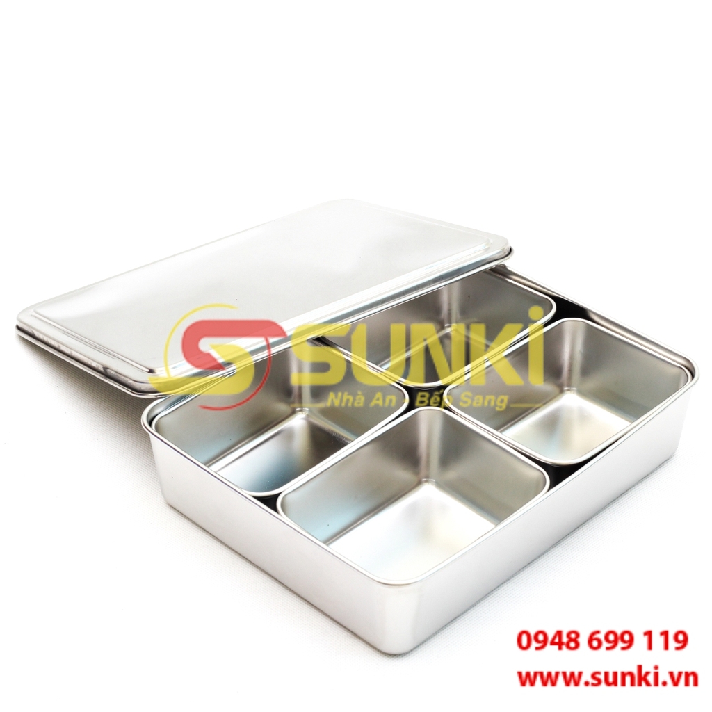 Hộp gia vị vuông inox 4 ô